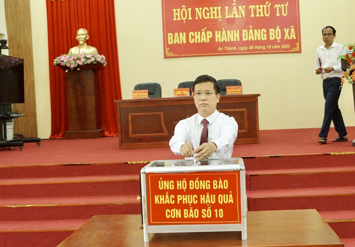 Các đại biểu ủng hộ nhân dân các tỉnh miền núi phía Bắc, miền Trung khắc phục hậu quả cơn bão số 10.Nhân dịp này, xã An Thành đã phát động ủng hộ nhân dân các tỉnh miền núi phía Bắc, miền Trung khắc phục hậu quả cơn bão số 10.