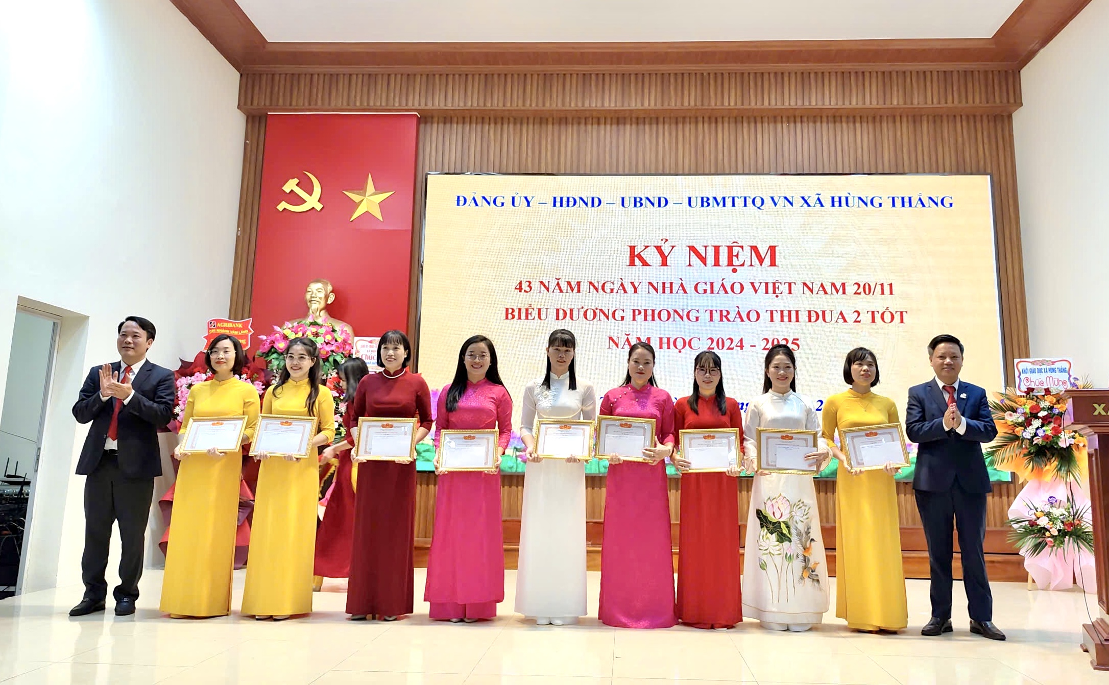 Xã Hùng Thắng kỷ niệm 43 năm Ngày Nhà giáo Việt Nam và biểu dương phong trào thi đua “Hai tốt” năm học 2024 - 2025