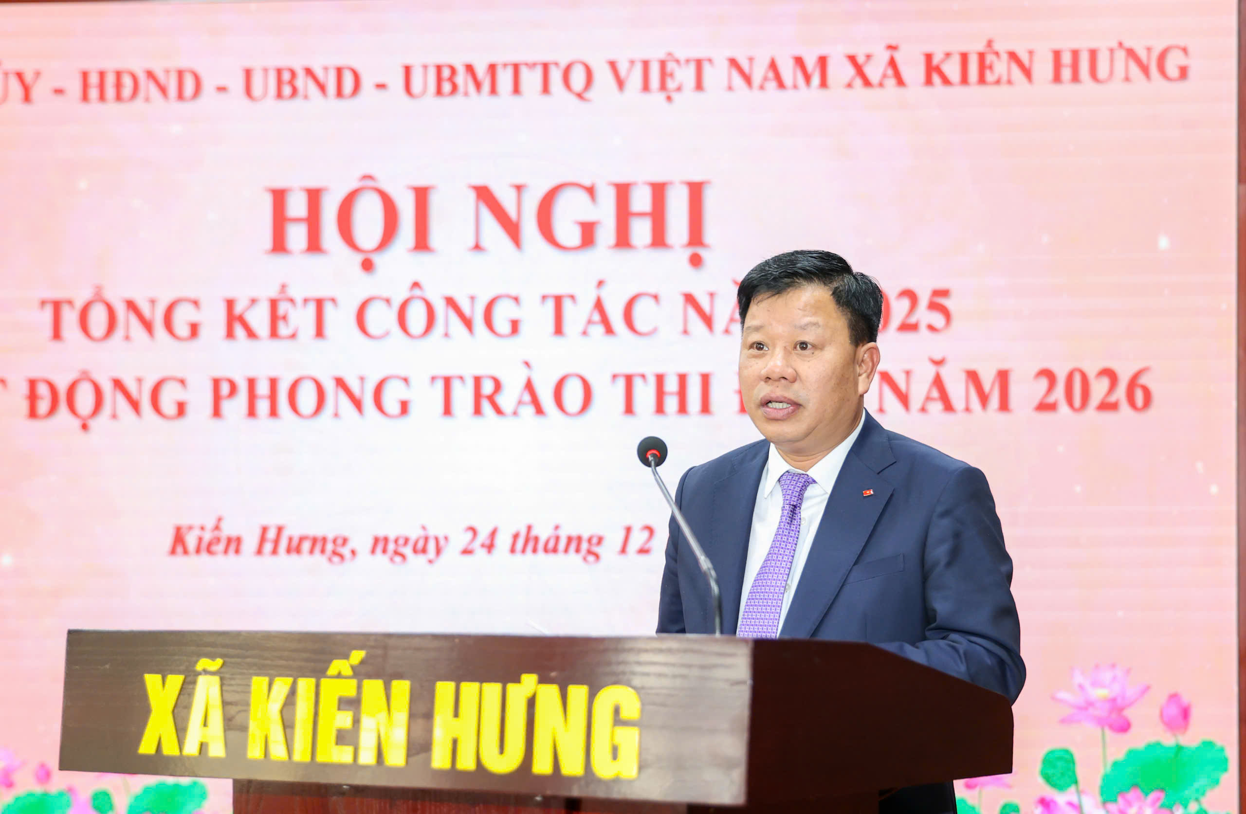 (Haiphong.gov.vn) - Sáng 24/12, Đảng ủy, HĐND, UBND, Ủy ban MTTQ Việt Nam xã Kiến Hưng tổ chức Hội nghị tổng kết công tác năm 2025, phát động phong trào thi đua năm 2026. Phó Chủ tịch UBND thành phố Lê Trung Kiên dự và chỉ đạo Hội nghị.