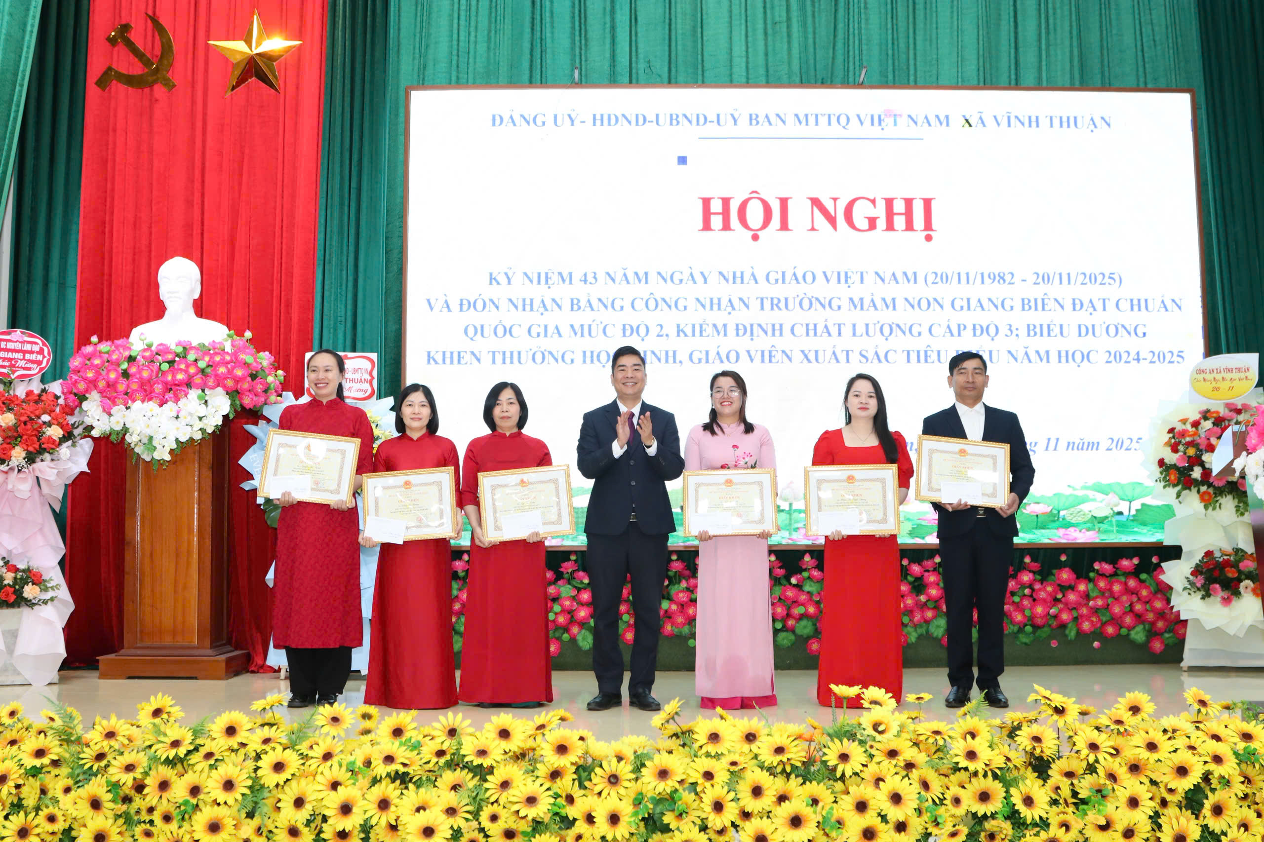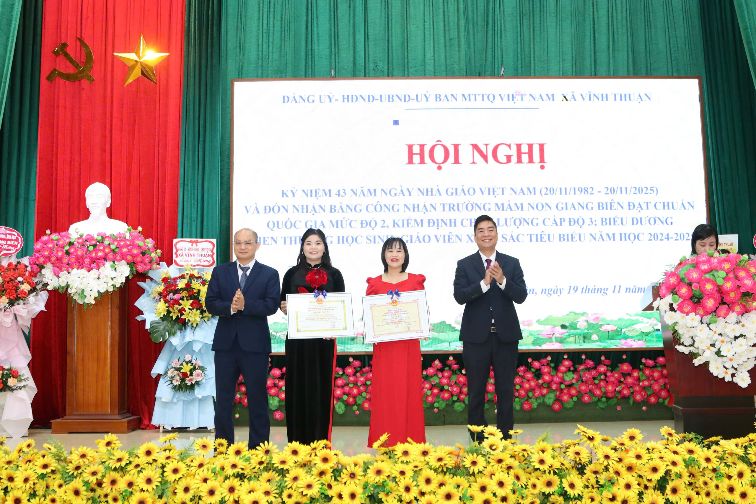 Xã Vĩnh Thuận biểu dương giáo viên, học sinh xuất sắc và đón Bằng công nhận Trường Mầm non Giang Biên đạt chuẩn Quốc gia mức độ 2